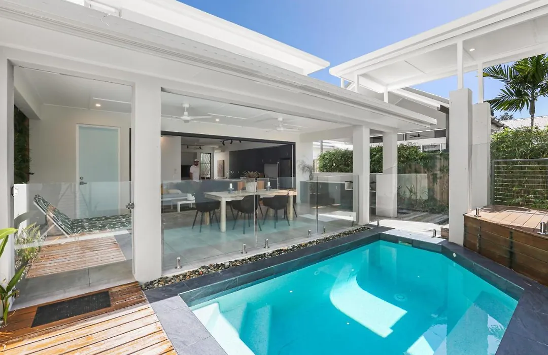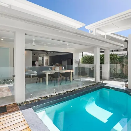 Palm Cove Jettyから徒歩でわずか5分の場所に位置するベッドルーム2室のCarinya - Secluded Luxury Minutes From The Beach パーム・コーブ ヴィラには、リラックスできるプールがあります。